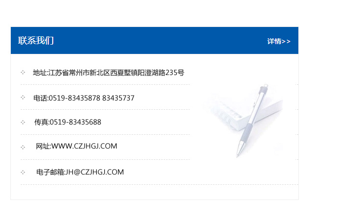 傳真:0519-83435688    郵編:213135    網址:WWW.czjhgj_com.knyart.com    電子郵箱:JH@czjhgj_com.knyart.com